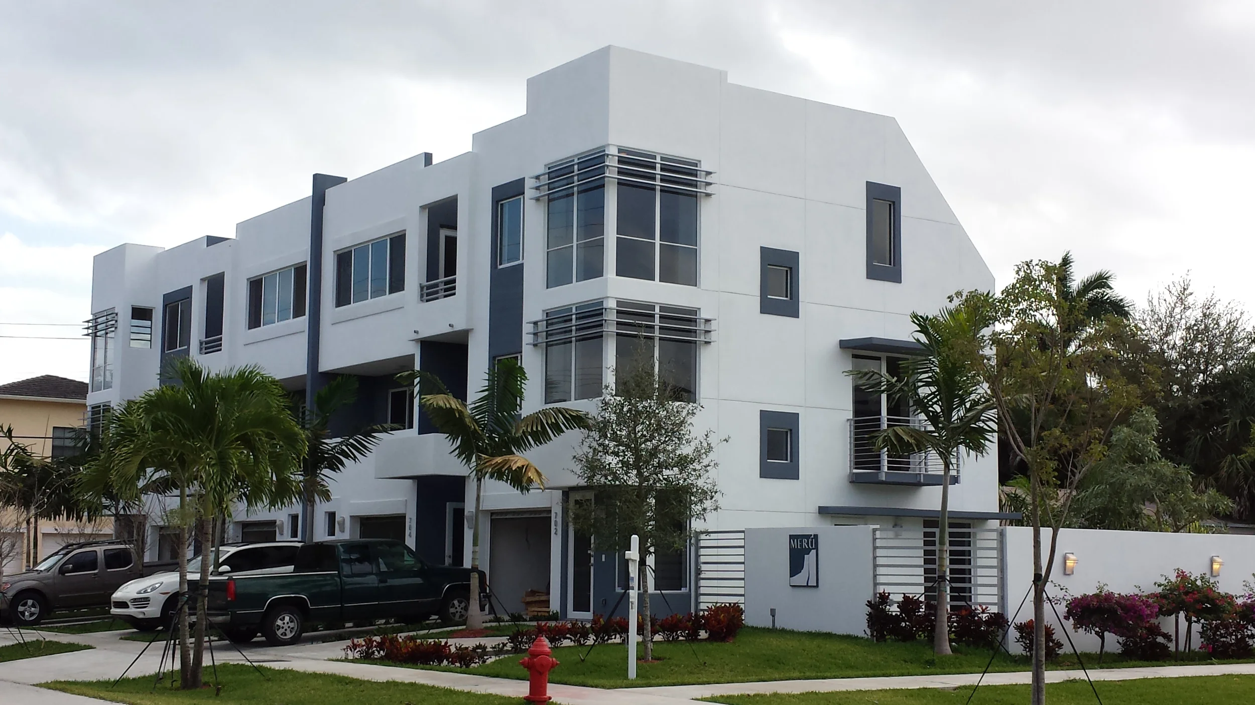 MERU is a 4 townhouse project built in Fort Lauderdale, FL. It has a modern design with 3 stories and minimalist facade.